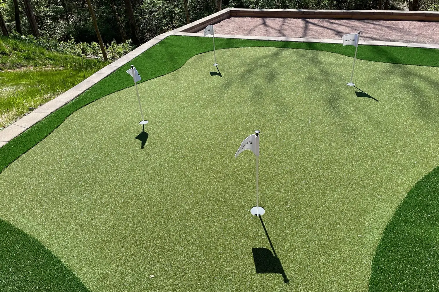 Golf enthusiasts in Richmond can enjoy professional-quality artificial golf greens right in their own backyard or at commercial golf facilities. SYNLawn Kentucky offers high-performance synthetic golf turf that mimics the look and feel of traditional grass, providing a consistent and smooth playing surface. Our commercial and backyard putting greens are custom-designed to fit nearly any space and can be tailored to different skill levels. They require minimal upkeep, making them a great addition for those looking to improve their short game without leaving home.