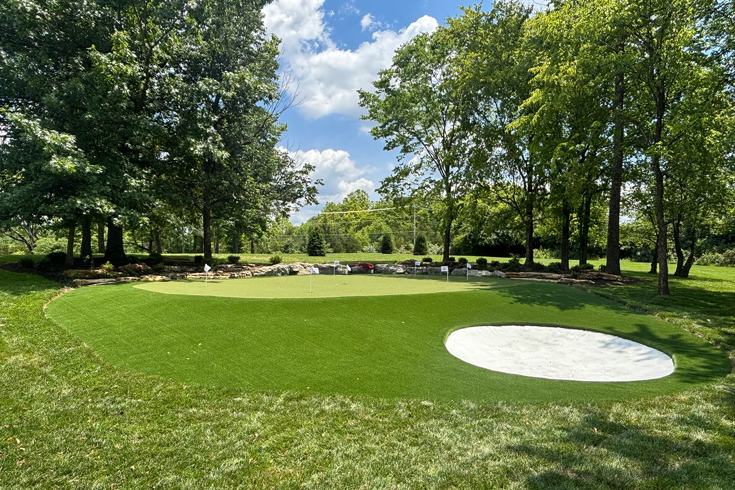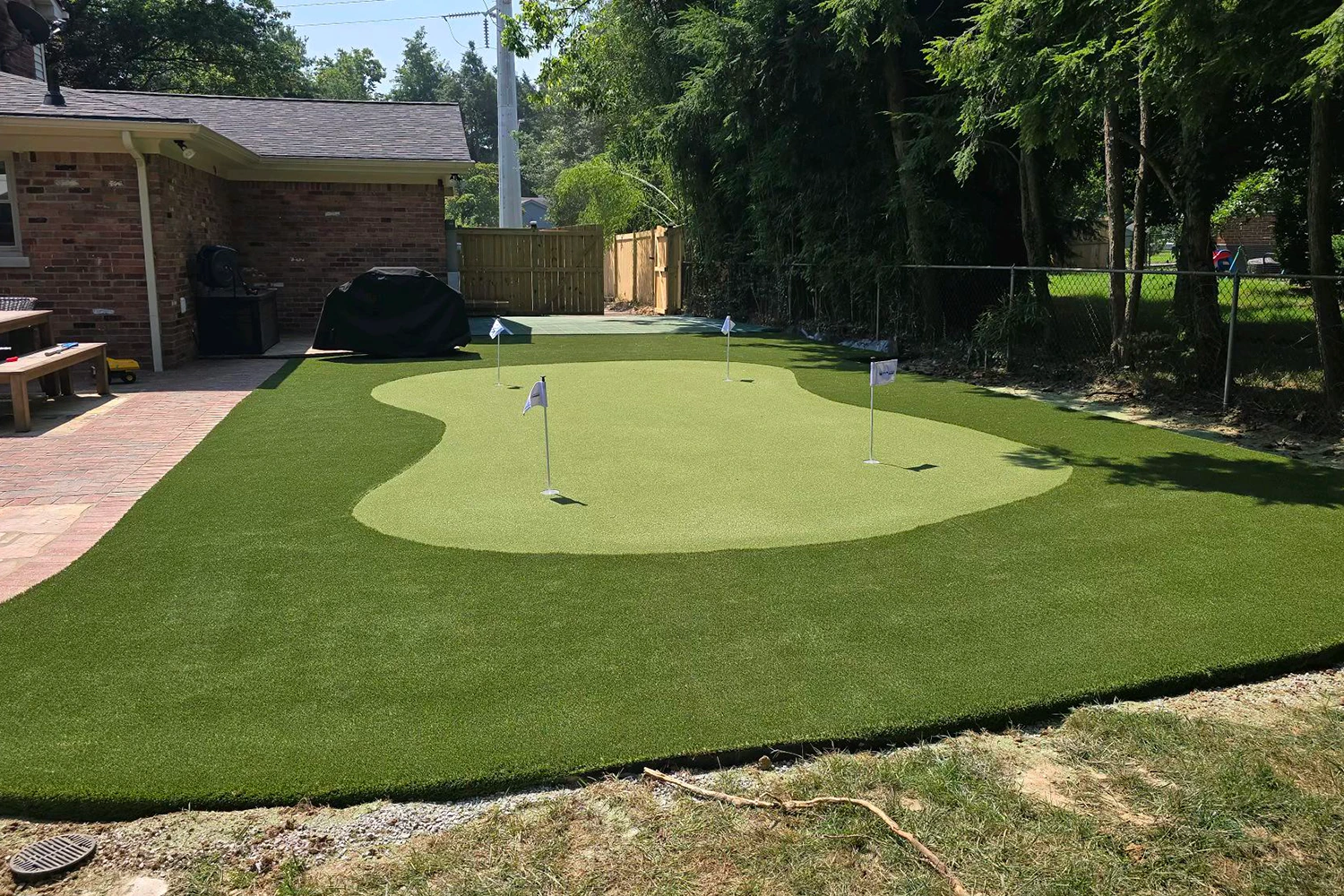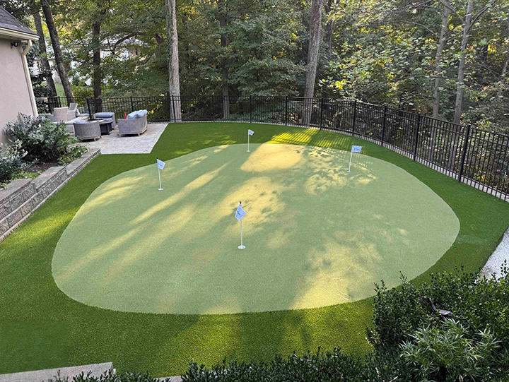 Absolutely! Every backyard putting green installation is fully customizable to suit your space, skill level, and desired aesthetics. We can include features like undulations, sand traps, and fringe grass to make your backyard look and feel like a private golf retreat. Our design team will work with you to create a putting surface that perfectly fits your goals and property layout.